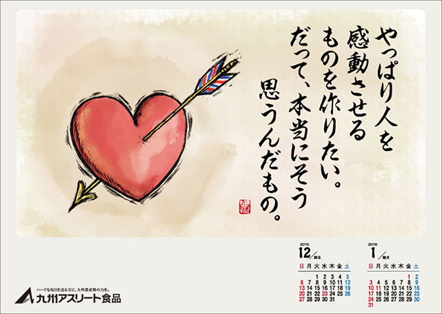 私たちの会社は、世の中を感動させるとてつもない作品(商品、サービス、エンター テイメント)を生み出したいと思っております!!だからこそ、カレンダーの12月は 「人を感動させるものを作りたい!!」という詩でやって参りました。