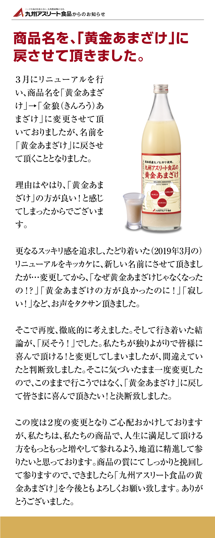 九州アスリート食品からのニュース