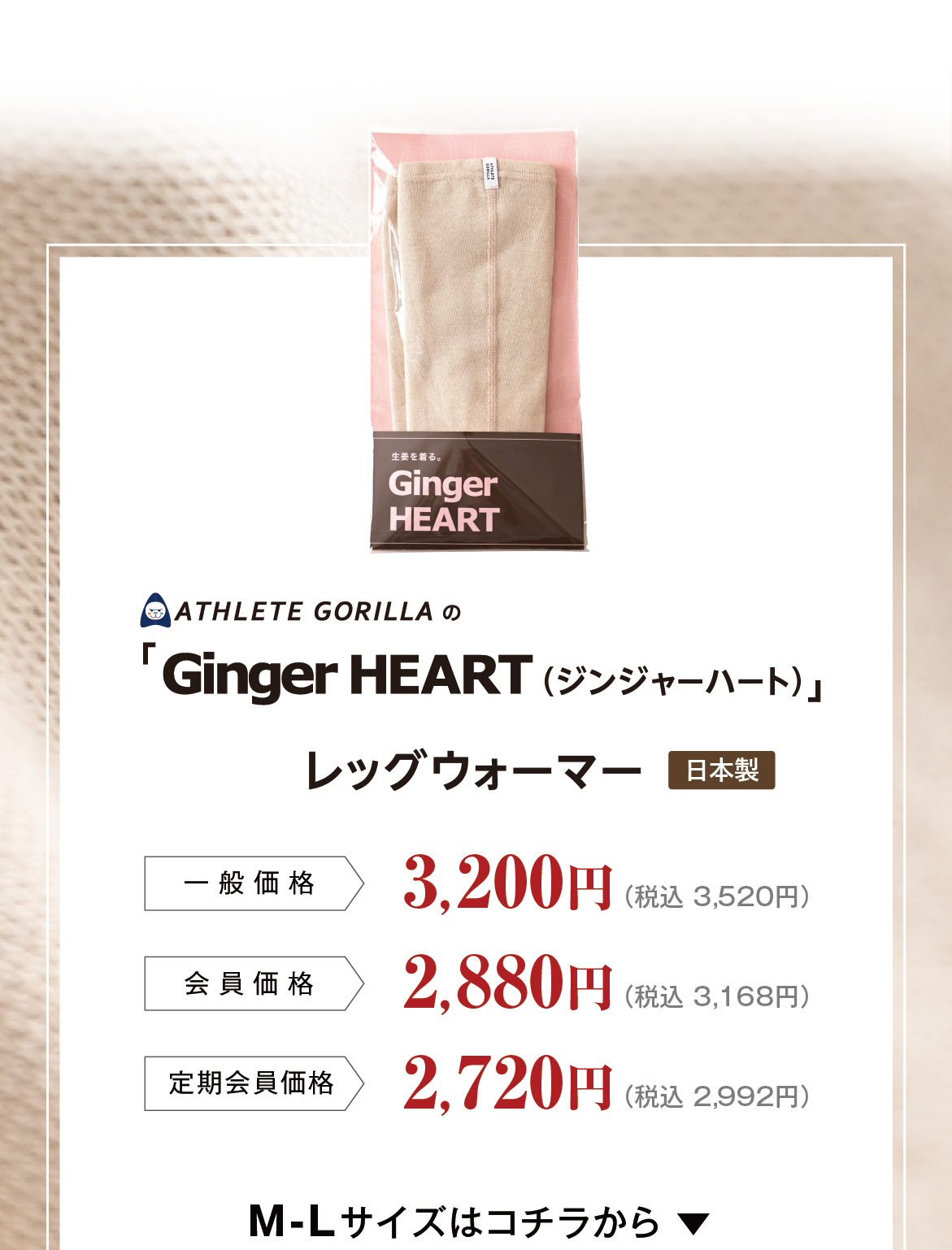「ATHLETE GORILLA」と書かれた ブランドネームタグが、上部外側にくるようご着用くださいませ。ウエストウォーマーは、肌着などのインナーの上から着ていただくのがおすすめです。