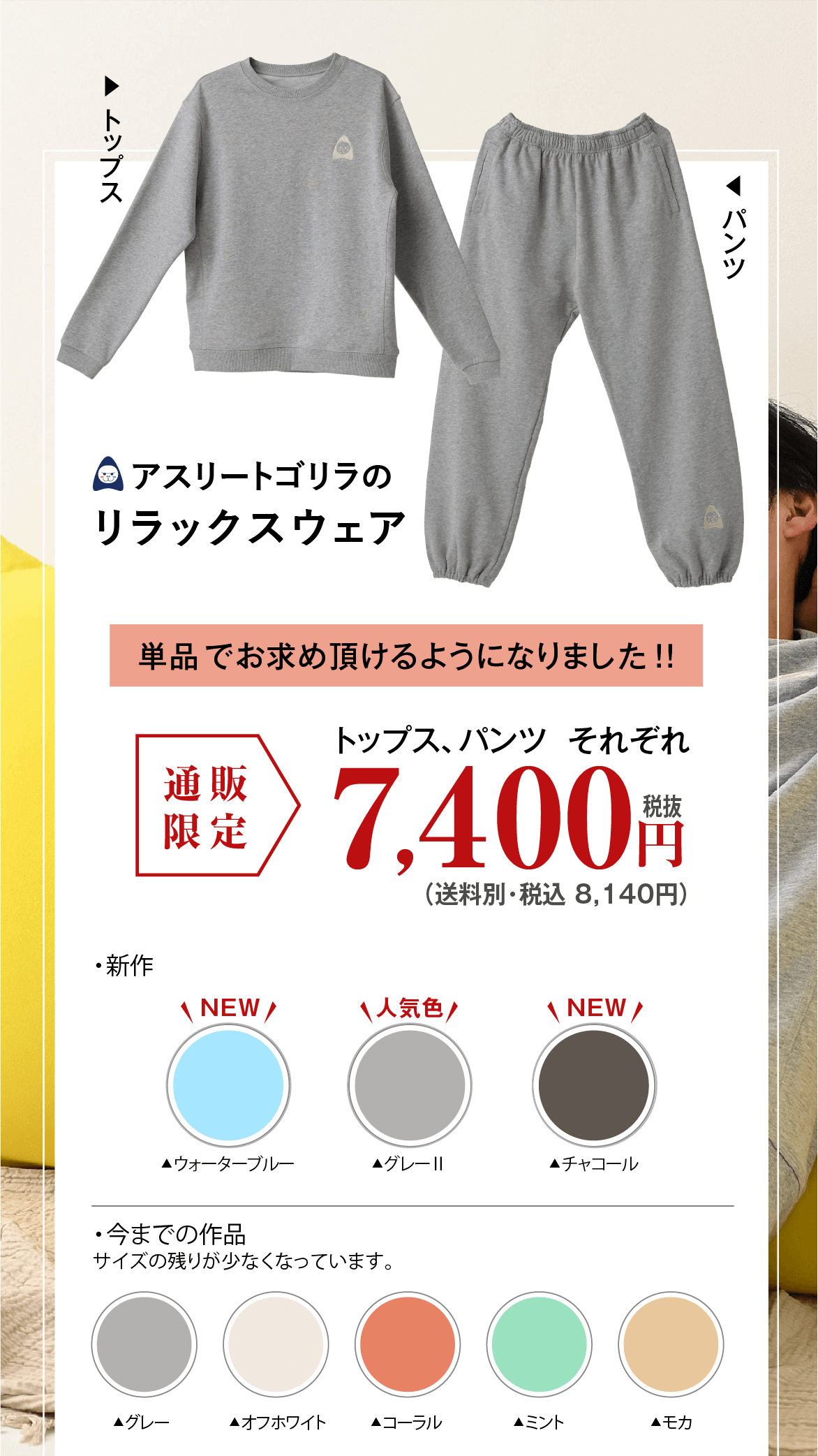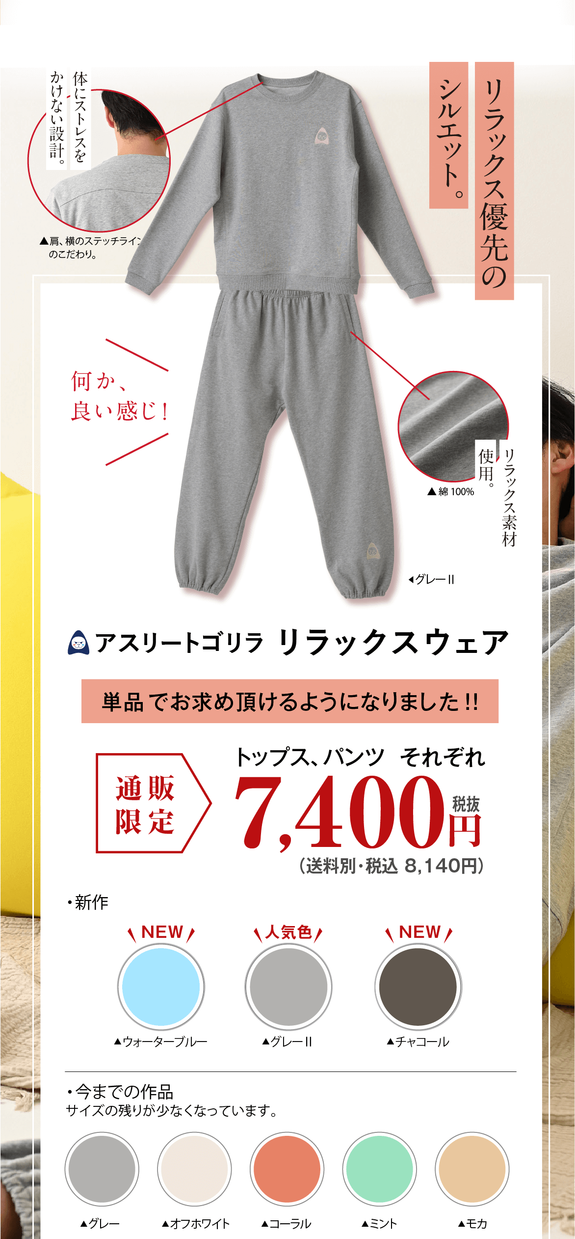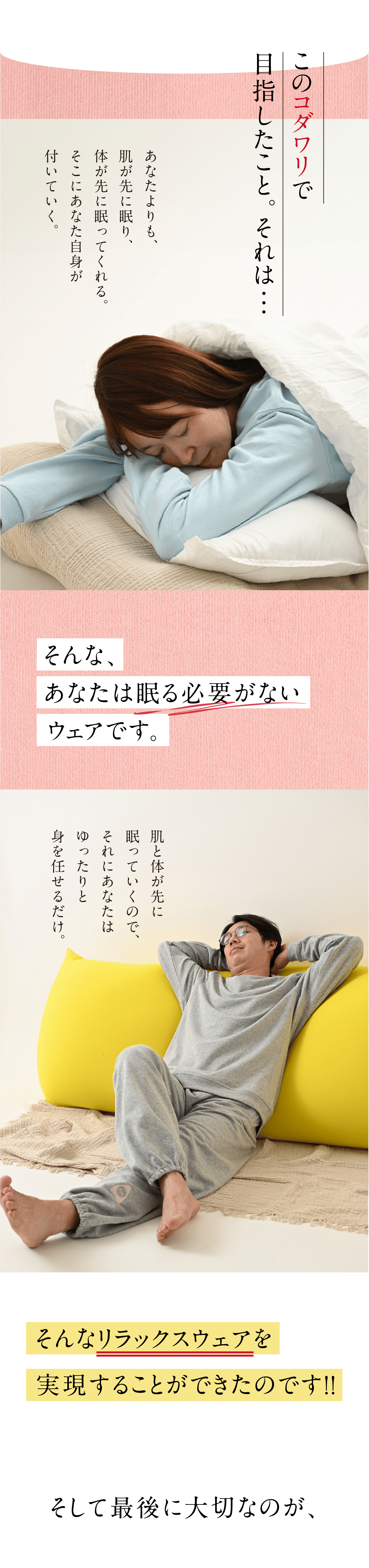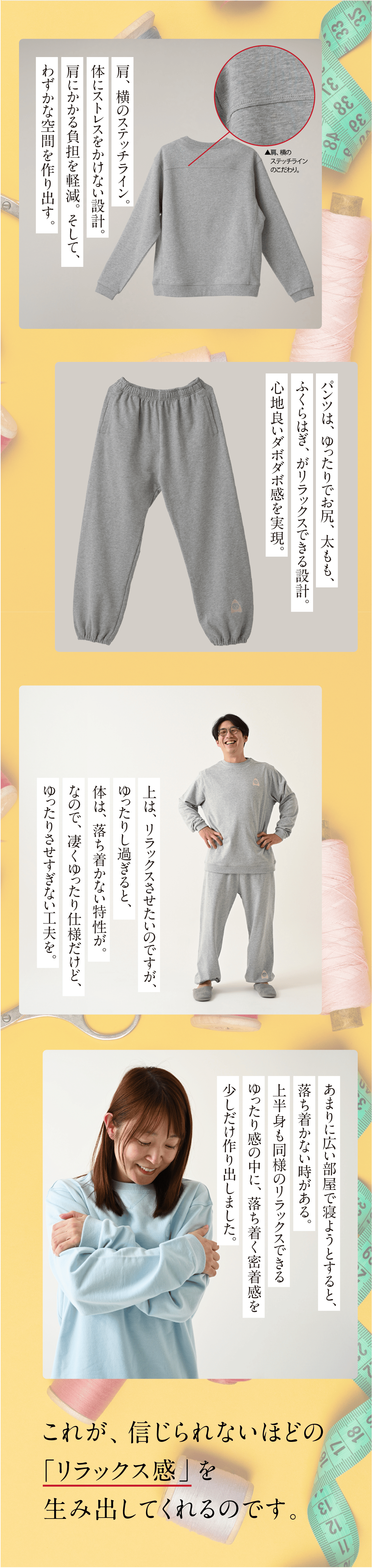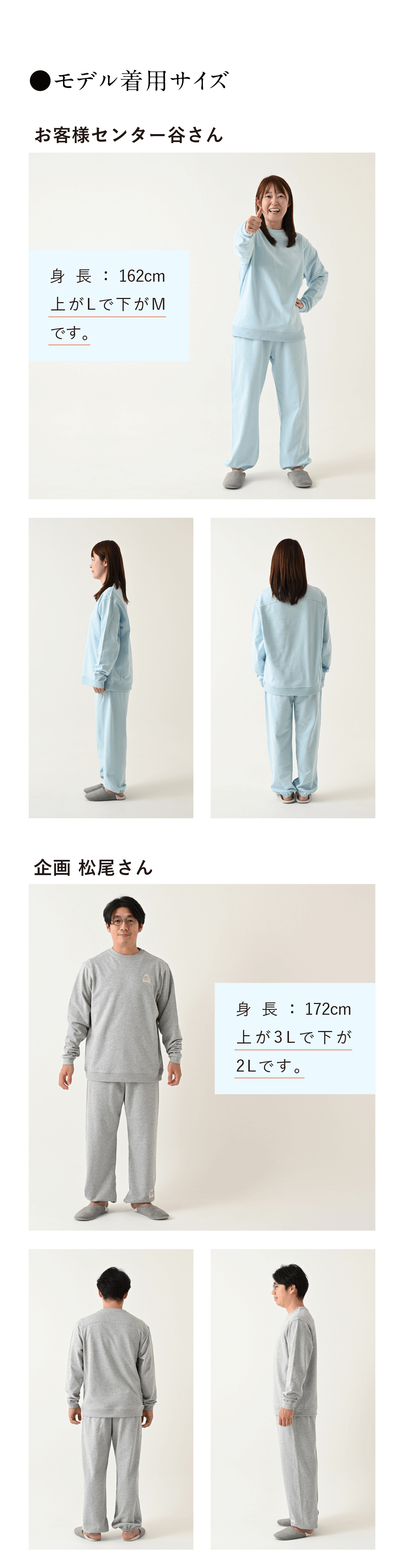 その上で、よりリラックス頂きたいので、できましたら上下でご着用頂くことをおすすめしております。