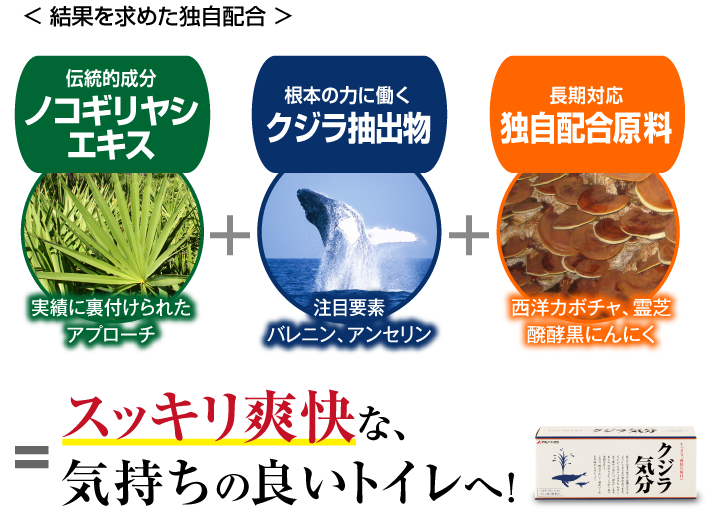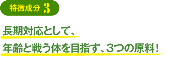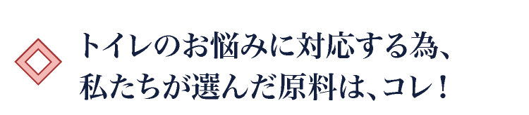 私たちは、トイレのお悩みを考える上で、年齢にも、東洋的視点からしっかりと向き合う必要があると考えました。それにより、上記2つの素材の力を更に高める事が、できると思っております。 その為に独自比率配合したのが・・・次の3つです!!